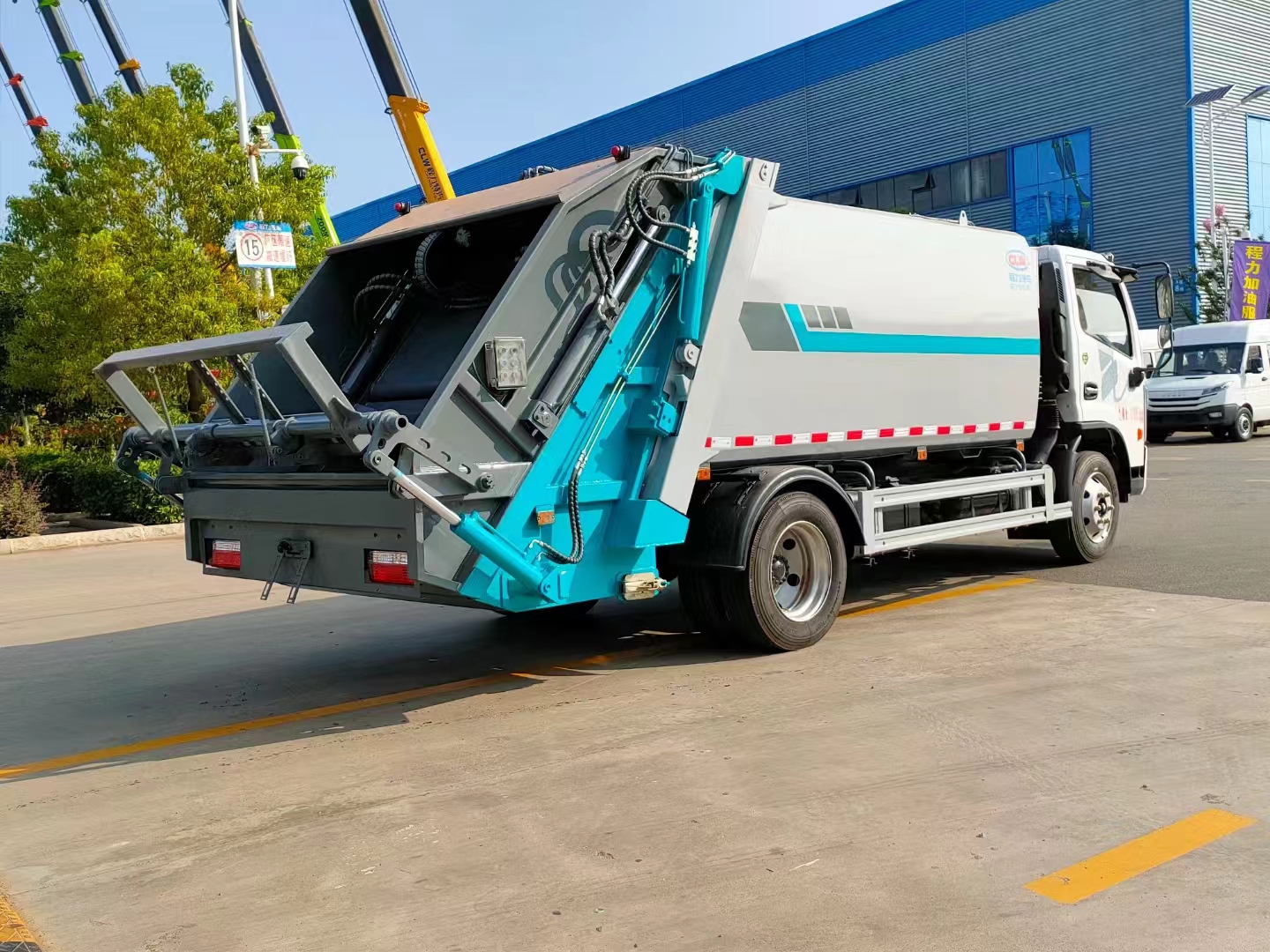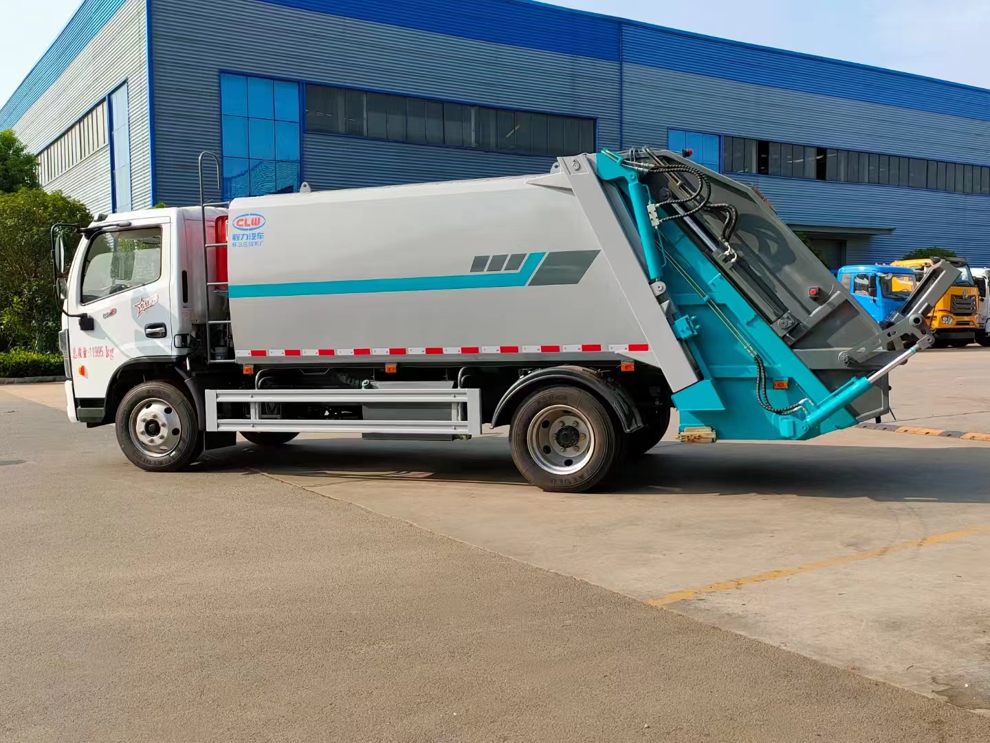 上裝配置 箱體10方容積,優質高強度Q600板材制作,圓弧形箱體結構,外置滑板油缸,箱體厚度邊四底五。雙向壓縮結構,帶尾部側部雙污水箱,光電感應,博利油缸,英國DLI密封圈,威森博樂多路閥,安徽皖液油泵,CAN/PLC操作模式,帶駕駛室操作,標配無線遙控器。標配壓實閥,增加裝載量。